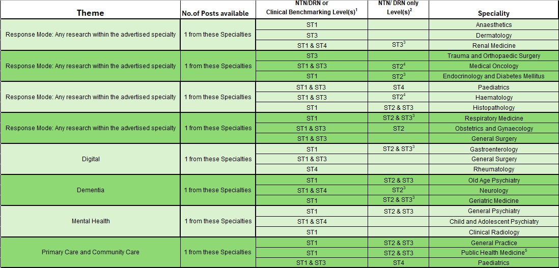1Applicants to this level must already hold a NTN/DRN in the specialty or apply via national recruitment to specialty this for Clinical Benchmarking.